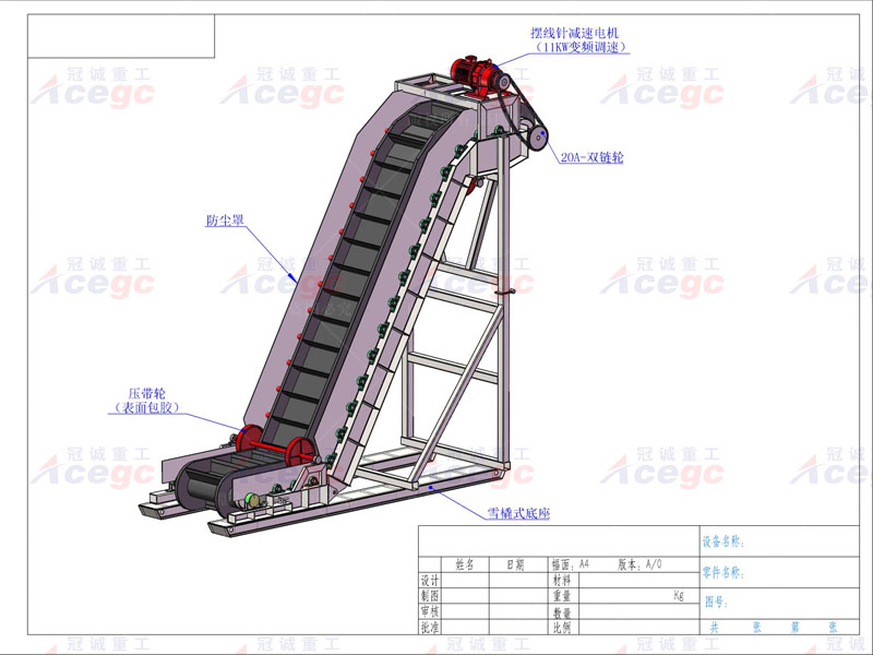 輸送皮帶:  B1400裙邊+擋板皮帶,裙邊高度200mm